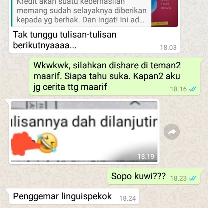 Dari pesan-pesan seperti ini lah saya jadi tahu kalau tulisan abal-abal pun ada yang mau baca. Dan tentu saja saya juga bersyukur dengan hal ini, dan kemudian mencoba menulis dengan lebih baik lagi, lebih memperkaya referensi bacaan dan tidak lupa pula dengan memperhatikan jenis tulisan kesukaan pembaca.